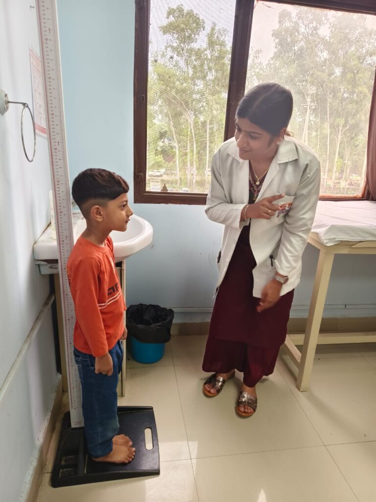 Growth monitoring activities were conducted at the Paediatrics OPD on 4th, 5th, and 8th September 2025, where 23 children were assessed and cases of Severe Acute Malnutrition (SAM) were identified. On these days, Dr. Vinita Rana also conducted a health talk for parents on balanced diets according to age and healthy dietary practices.