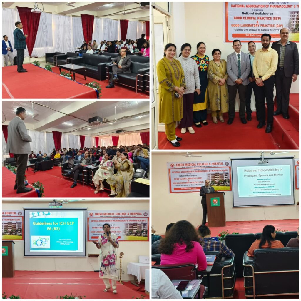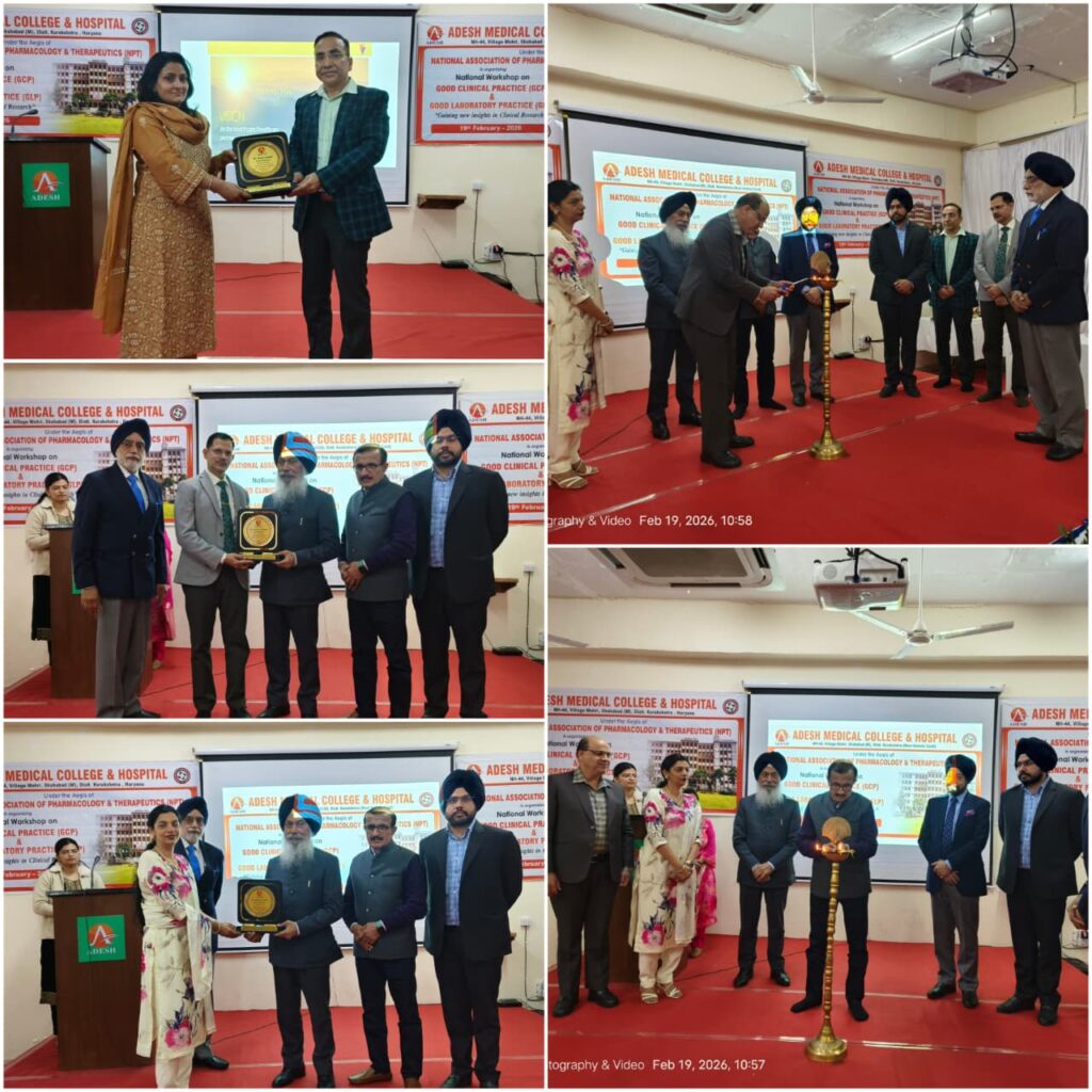 Under the aegis of the National Association of Pharmacology & Therapeutics (NPT), the Department of Pharmacology, Adesh Medical College & Hospital, Shahabad (Haryana), successfully organized a National Workshop on Good Clinical Practice (GCP) and Good Laboratory Practice (GLP) on 19 February 2026.
